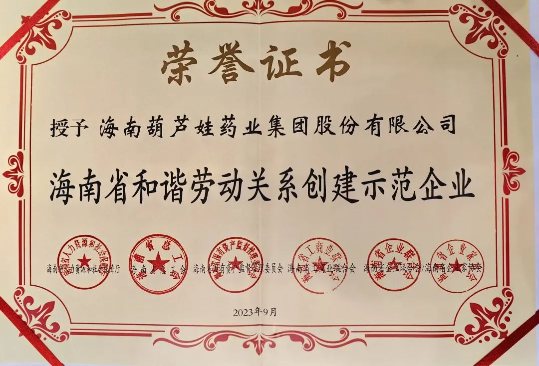 热博RB88药业集团获评“海南省和谐劳动关系创建示范企业”